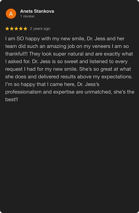 Since veneers are considered cosmetic, insurance doesn’t cover the cost. However, we offer third-party financing to help break payments into manageable monthly installments.